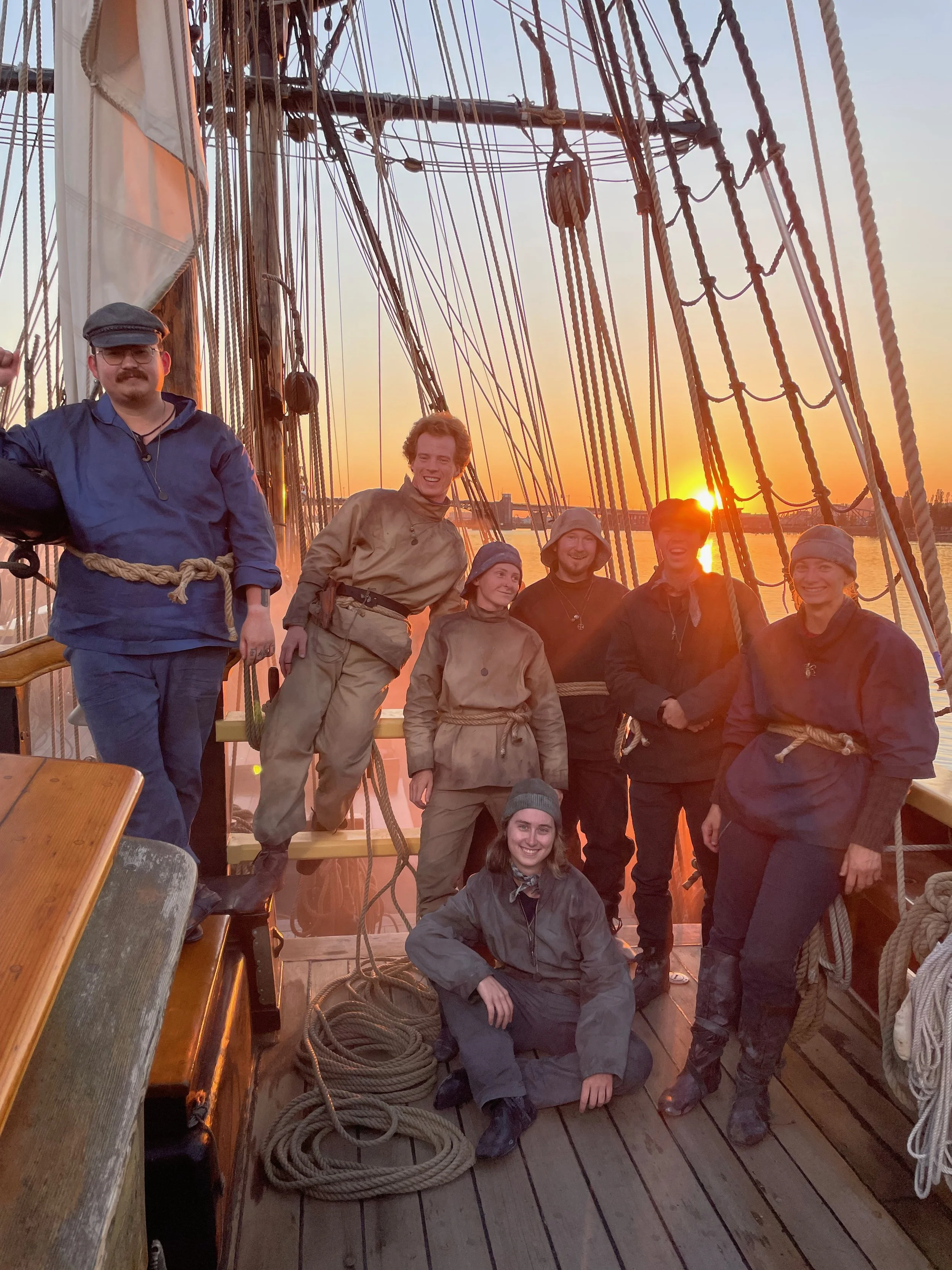 Since these sailors have been out at sea for a long time, I needed to make sure their uniforms are 1.) water-repellent and 2.) worn-in and weathered. I painted on all of the costumes to create built-up dirt—not overly dirty, but just enough that it looked like they had been worn for years. I also gave their jackets, accessories and shoes a ‘salty’ look, to make them look like they had been splashed by ocean waves over and over again. I then waterproofed the jackets with beeswax, which gave them a ‘waxed-canvas’ look.